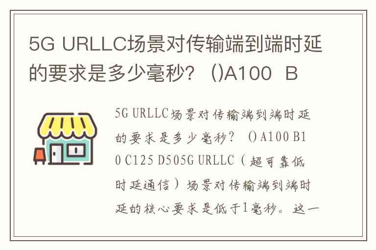 5G URLLC场景对传输端到端时延的要求是多少毫秒? ()A100 B10 C125 D50