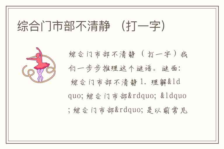 谜面: 综合门市部不清静 1. 理解“综合门市部” “综合门市部”是以前常见的商店,卖各种日用品,类似“百货商店”。