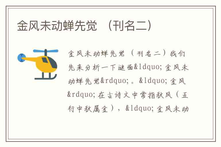 我们先来分析一下谜面“金风未动蝉先觉”。