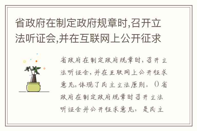 省政府在制定政府规章时,召开立法听证会,并在互联网上公开征求意见,体现了民主立法原则。()
