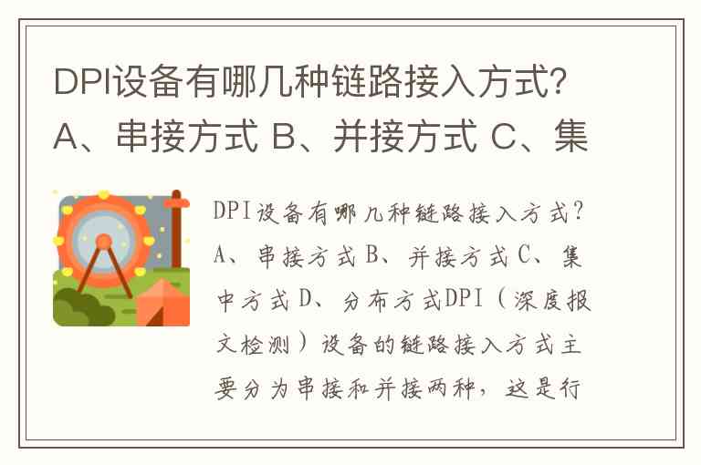 DPI设备有哪几种链路接入方式?A、串接方式 B、并接方式 C、集中方式 D、分布方式