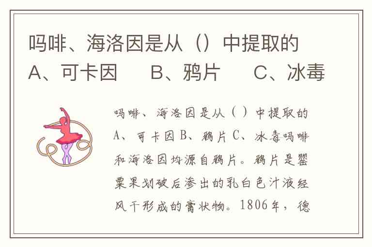 吗啡和海洛因均源自鸦片。鸦片是罂粟果划破后渗出的乳白色汁液经风干形成的膏状物。1806年,德国药剂师泽尔蒂纳从鸦片中首次分离出吗啡,其含量约占鸦片的10%-15%,因具有强烈镇痛作用被命名为“纯净之鸦片”。而海洛因则是1874年通过吗啡与醋酸酐反应合成的二乙酰吗啡,1897年德国拜耳公司将其命名为“Heroin”并推向市场,宣称是“不会成瘾的吗啡替代品”。这种“升级版”毒品后来被证实成瘾性远超吗啡,成为危害全球的“毒品之王”。答案选 B、鸦片。
