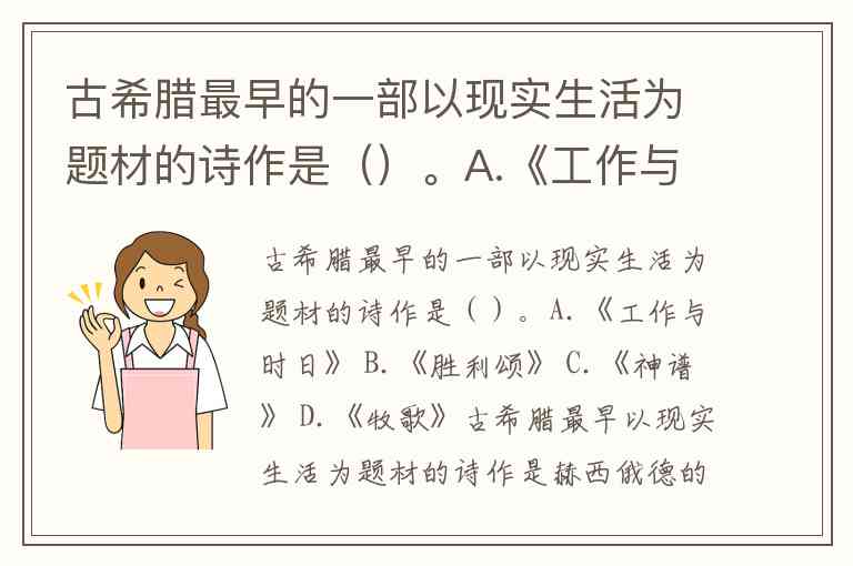 古希腊最早的一部以现实生活为题材的诗作是()。A.《工作与时日》 B.《胜利颂》 C.《神谱》 D.《牧歌》