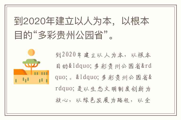 到2020年建立以人为本,以根本目的“多彩贵州公园省”。