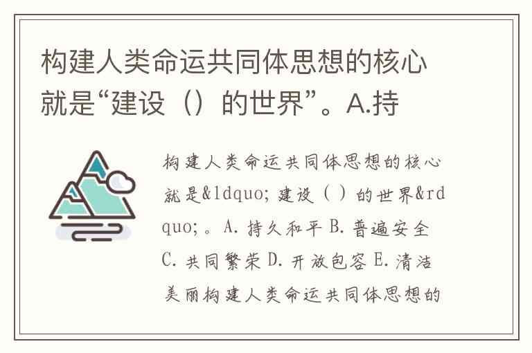 构建人类命运共同体思想的核心就是“建设()的世界”。A.持久和平 B.普遍安全 C.共同繁荣 D.开放包容 E.清洁美丽