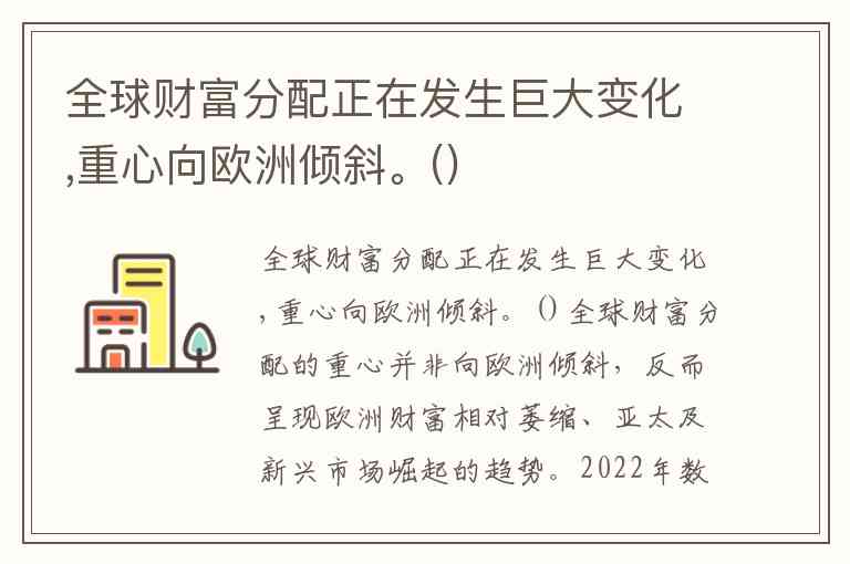 全球财富分配正在发生巨大变化,重心向欧洲倾斜。()