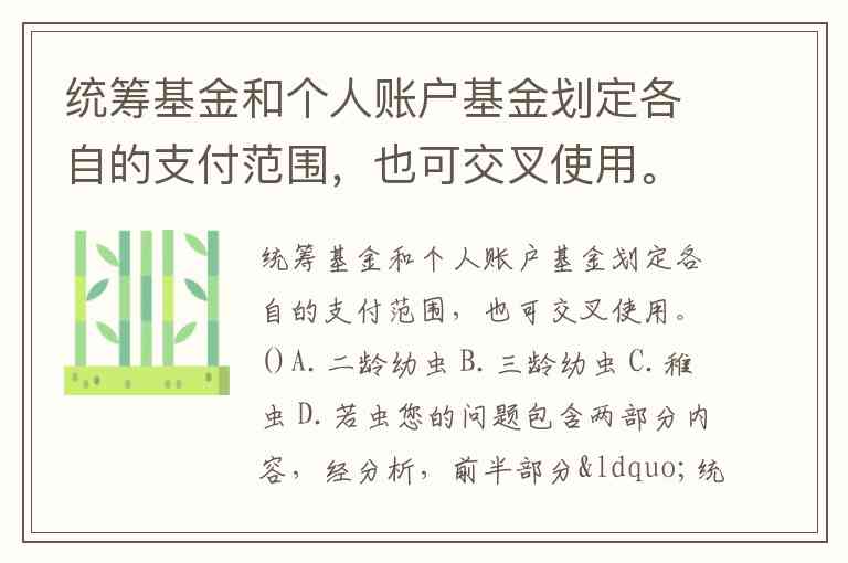 您的问题包含两部分内容,经分析,前半部分“统筹基金和个人账户基金划定各自的支付范围,也可交叉使用”是关于医保基金的表述,后半部分“A.二龄幼虫 B.三龄幼虫 C.稚虫 D.若虫”是生物学幼虫阶段的选项,两者无直接关联。以下分别解答: