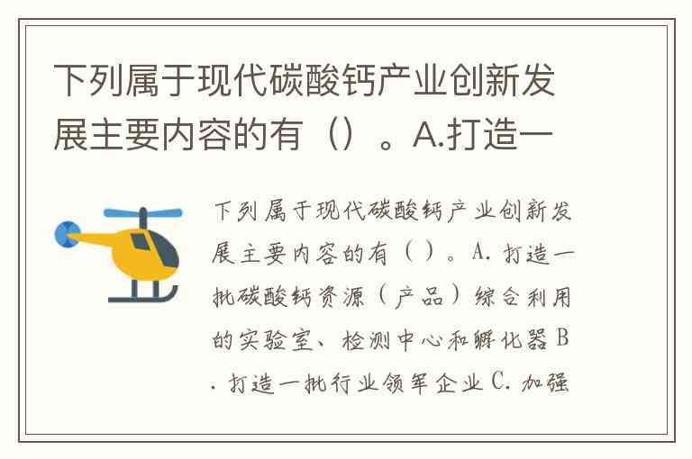 下列属于现代碳酸钙产业创新发展主要内容的有()。A.打造一批碳酸钙资源(产品)综合利用的实验室、检测中心和孵化器 B.打造一批行业领军企业 C.加强重大关键共性科技的联合攻关行动 D.打造中国碳酸钙产业公共服务平台