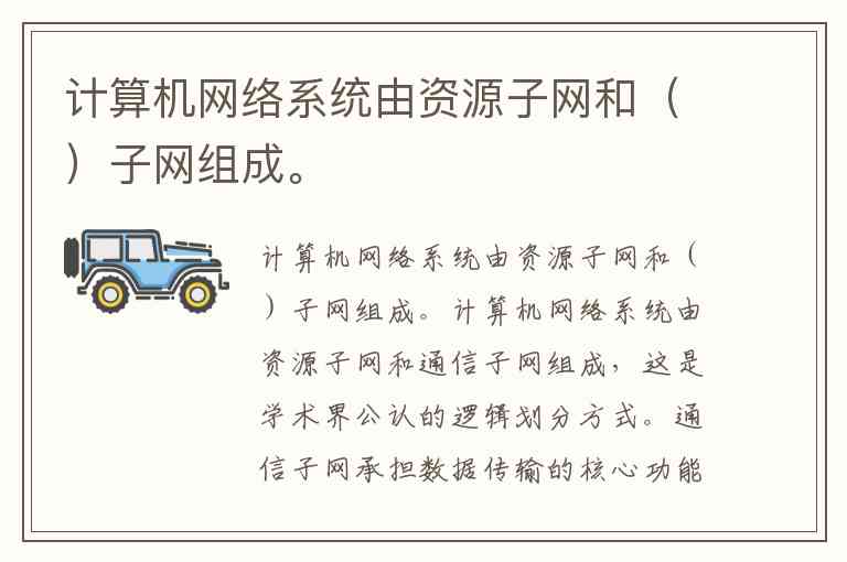 计算机网络系统由资源子网和通信子网组成,这是学术界公认的逻辑划分方式。通信子网承担数据传输的核心功能,如同网络的"高速公路系统",而资源子网则作为"服务区",提供各类计算资源和服务。