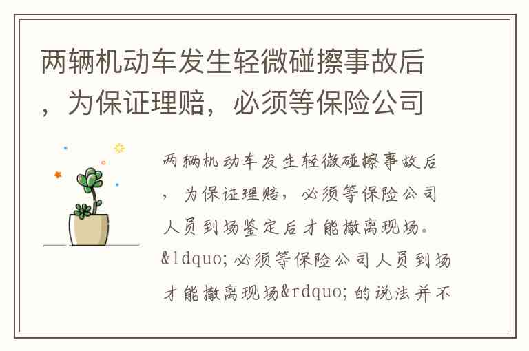 两辆机动车发生轻微碰擦事故后,为保证理赔,必须等保险公司人员到场鉴定后才能撤离现场。