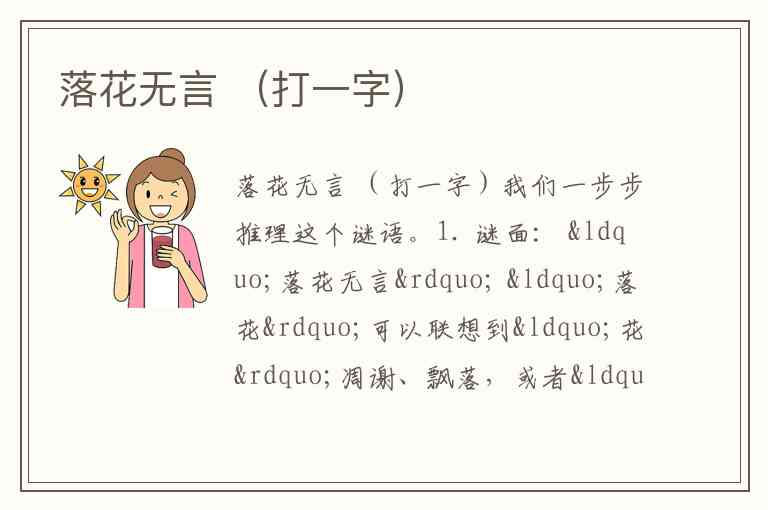 1. 谜面: “落花无言” “落花”可以联想到“花”凋谢、飘落,或者“花”字的一部分去掉。
