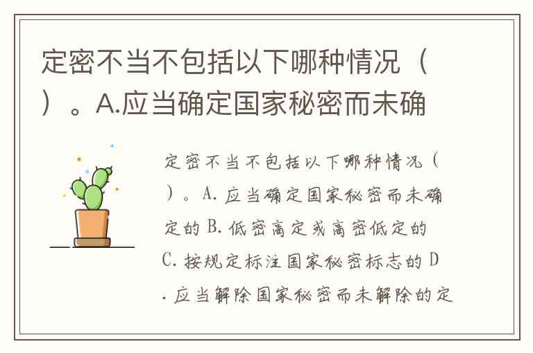 定密不当不包括以下哪种情况()。A.应当确定国家秘密而未确定的 B.低密高定或高密低定的 C.按规定标注国家秘密标志的 D.应当解除国家秘密而未解除的