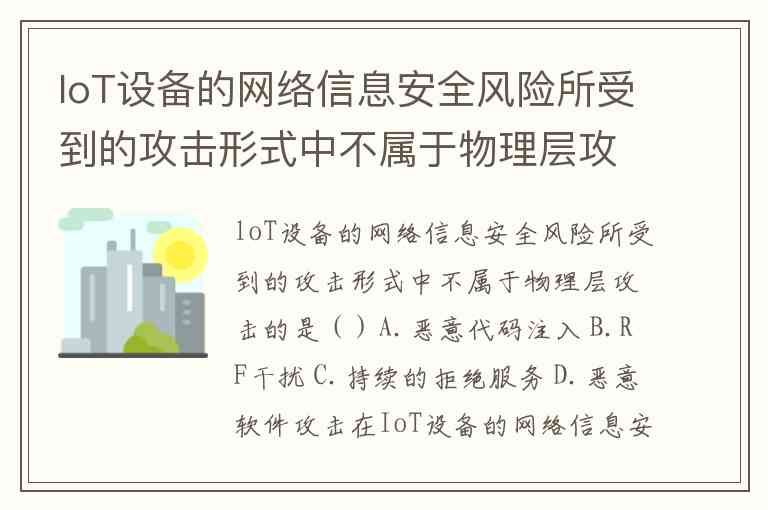 loT设备的网络信息安全风险所受到的攻击形式中不属于物理层攻击的是()A.恶意代码注入 B.RF干扰 C.持续的拒绝服务 D.恶意软件攻击