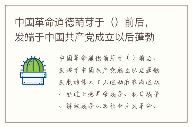 中国革命道德萌芽于()前后,发端于中国共产党成立以后蓬勃发展的伟大工人运动和农民运动,经过土地革命战争、抗日战争、解放战争以及社会主义革命、建设、改革的长期发展,逐渐形成并不断发扬光大。A.五四运动 B.土地革命 C.抗日战争 D.解放战争