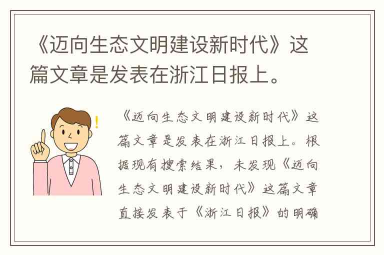 若需确认特定文章的发表信息,建议通过《浙江日报》数字报平台检索具体日期或关键词,或联系报社获取权威档案查询服务。浙江作为生态文明建设的先行省份,其媒体对相关主题的报道具有时效性和实践指导性,可作为研究该领域发展的重要参考。