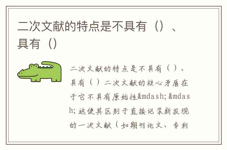 二次文献的特点是不具有()、具有()
