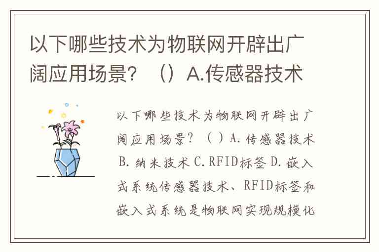 以下哪些技术为物联网开辟出广阔应用场景?()A.传感器技术 B.纳米技术 C.RFID标签 D.嵌入式系统