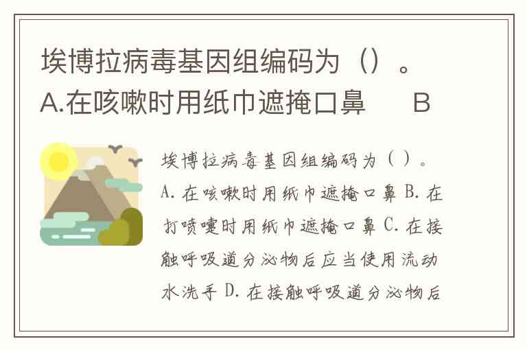 埃博拉病毒基因组编码为()。A.在咳嗽时用纸巾遮掩口鼻 B.在打喷嚏时用纸巾遮掩口鼻 C.在接触呼吸道分泌物后应当使用流动水洗手 D.在接触呼吸道分泌物后须用专用的消毒洗手液洗手