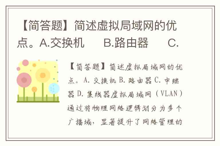 【简答题】简述虚拟局域网的优点。A.交换机 B.路由器 C.中继器 D.集线器