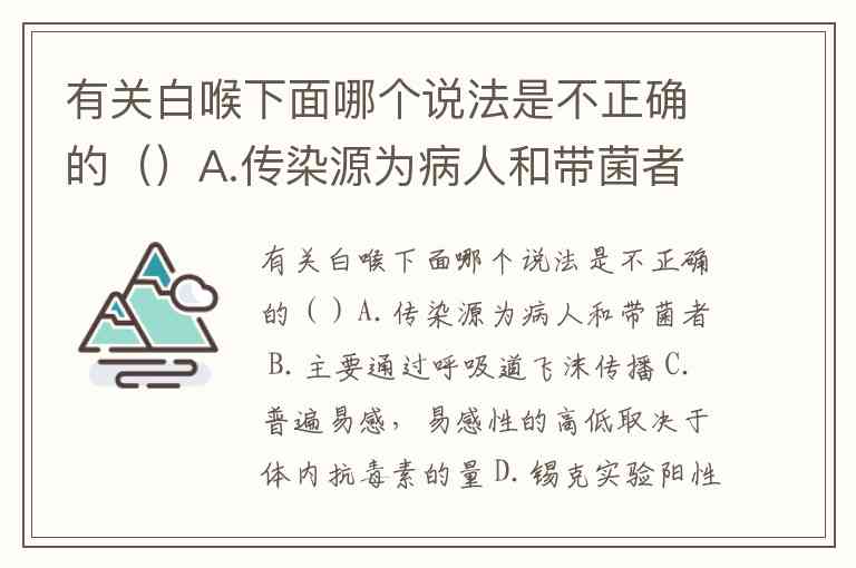 有关白喉下面哪个说法是不正确的()A.传染源为病人和带菌者 B.主要通过呼吸道飞沫传播 C.普遍易感,易感性的高低取决于体内抗毒素的量 D.锡克实验阳性,对白喉无免疫力 E.锡克实验阴性,对白喉无免疫力