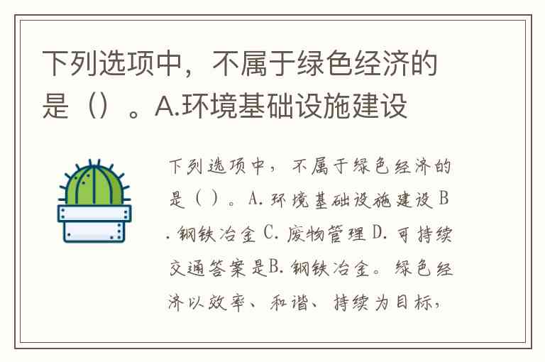 下列选项中,不属于绿色经济的是()。A.环境基础设施建设 B.钢铁冶金 C.废物管理 D.可持续交通