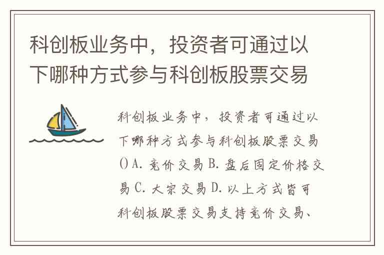 科创板业务中,投资者可通过以下哪种方式参与科创板股票交易()A.竞价交易 B.盘后固定价格交易 C.大宗交易 D.以上方式皆可