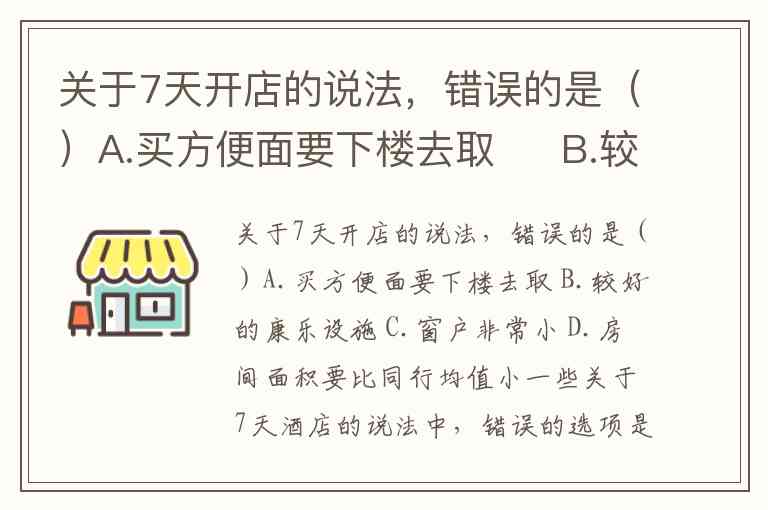关于7天开店的说法,错误的是()A.买方便面要下楼去取 B.较好的康乐设施 C.窗户非常小 D.房间面积要比同行均值小一些