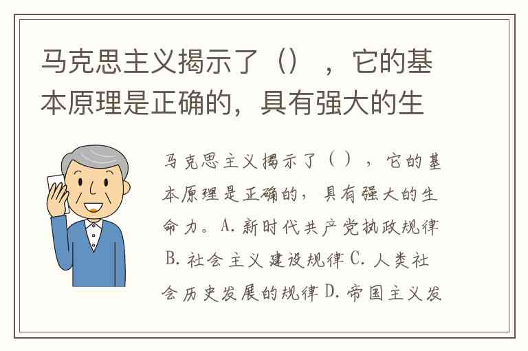 马克思主义揭示了() ,它的基本原理是正确的,具有强大的生命力。A.新时代共产党执政规律 B.社会主义建设规律 C.人类社会历史发展的规律 D.帝国主义发展规律