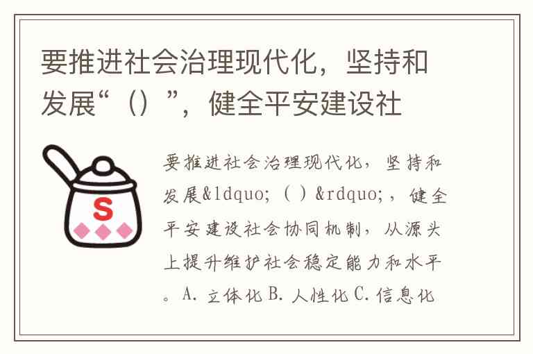 要推进社会治理现代化,坚持和发展“()”,健全平安建设社会协同机制,从源头上提升维护社会稳定能力和水平。A.立体化 B.人性化 C.信息化
