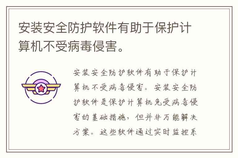 安装安全防护软件有助于保护计算机不受病毒侵害。