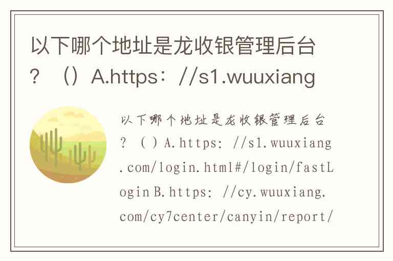 以下哪个地址是龙收银管理后台?()A.https://s1.wuuxiang.com/login.html#/login/fastLogin B.https://cy.wuuxiang.com/cy7center/canyin/report/ C.https://mp.wuuxiang.com/login D.http://scrm.wuuxiang.com/#/home/main