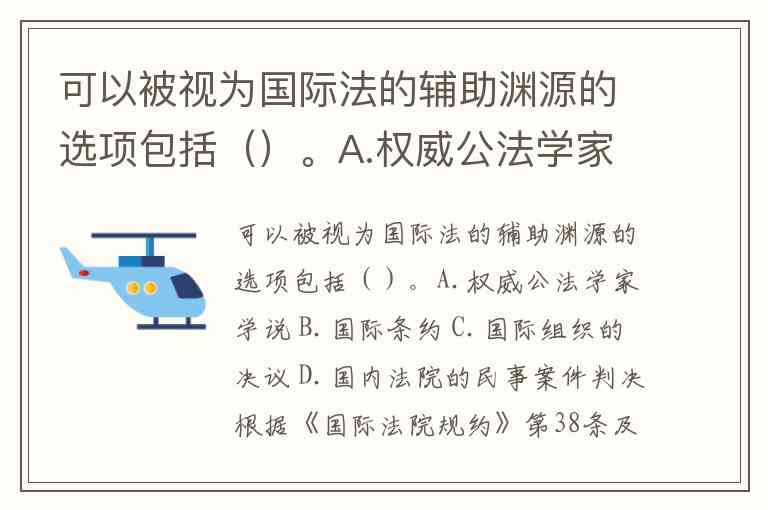 可以被视为国际法的辅助渊源的选项包括()。A.权威公法学家学说 B.国际条约 C.国际组织的决议 D.国内法院的民事案件判决