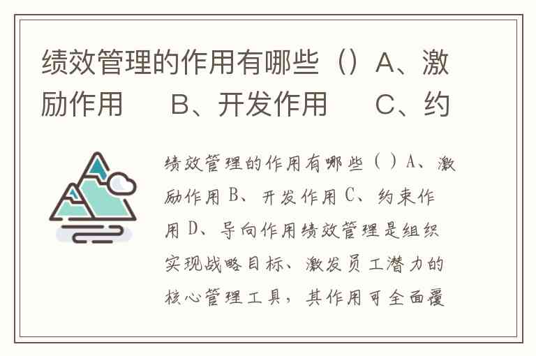 绩效管理的作用有哪些()A、激励作用 B、开发作用 C、约束作用 D、导向作用