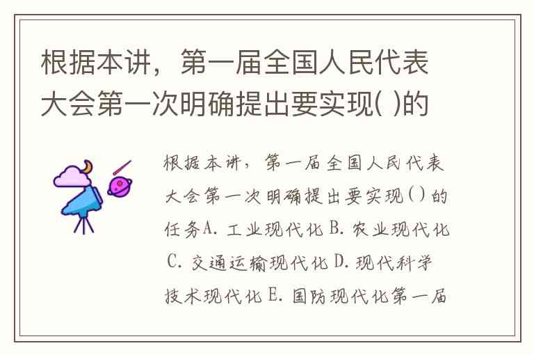 根据本讲,第一届全国人民代表大会第一次明确提出要实现( )的任务A.工业现代化 B.农业现代化 C.交通运输现代化 D.现代科学技术现代化 E.国防现代化