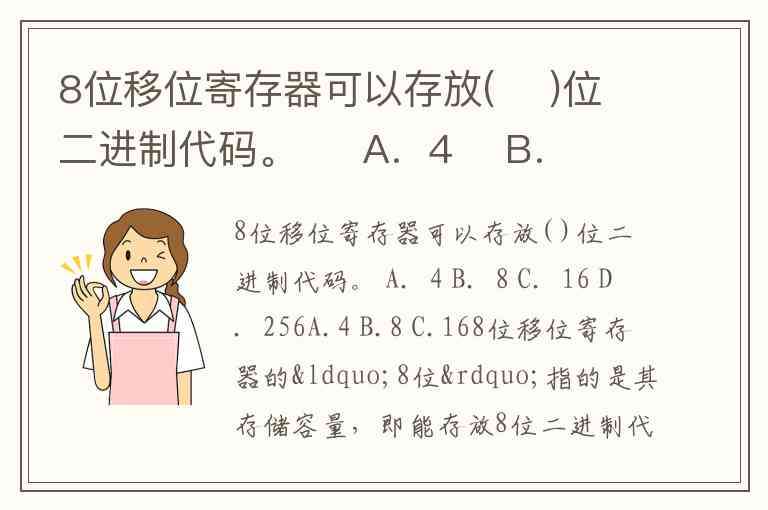 8位移位寄存器可以存放( )位二进制代码。 A.4 B.8 C.16 D.256A.4 B.8 C.16