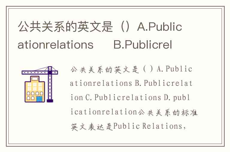 公共关系的英文是()A.Publicationrelations B.Publicrelation C.Publicrelations D.publicationrelation