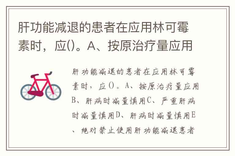 肝功能减退的患者在应用林可霉素时,应()。A、按原治疗量应用B、肝病时减量慎用C、严重肝病时减量慎用D、肝病时减量慎用E、绝对禁止使用