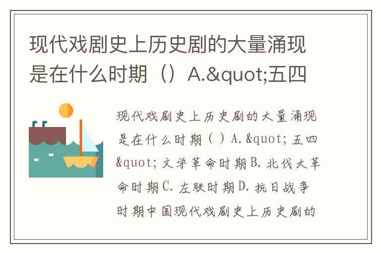 现代戏剧史上历史剧的大量涌现是在什么时期()A."五四"文学革命时期 B.北伐大革命时期 C.左联时期 D.抗日战争时期