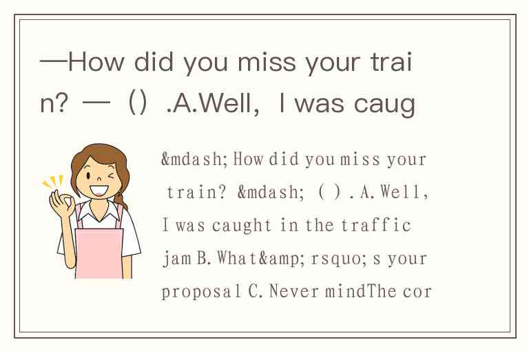 —How did you miss your train?—().A.Well,I was caught in the traffic jam B.What’s your proposal C.Never mind