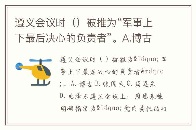 遵义会议时()被推为“军事上下最后决心的负责者”。A.博古 B.张闻天 C.周恩来 D.毛泽东