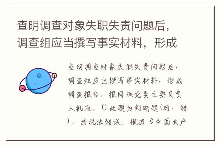 查明调查对象失职失责问题后,调查组应当撰写事实材料,形成调查报告,报同级党委主要负责人批准。()此题为判断题(对,错)。