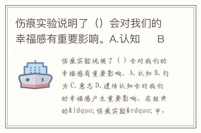 伤痕实验说明了()会对我们的幸福感有重要影响。A.认知 B.行为 C.意志 D.遗传