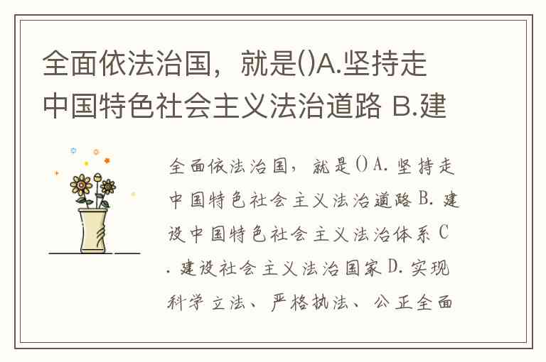 全面依法治国,就是()A.坚持走中国特色社会主义法治道路 B.建设中国特色社会主义法治体系 C.建设社会主义法治国家 D.实现科学立法、严格执法、公正
