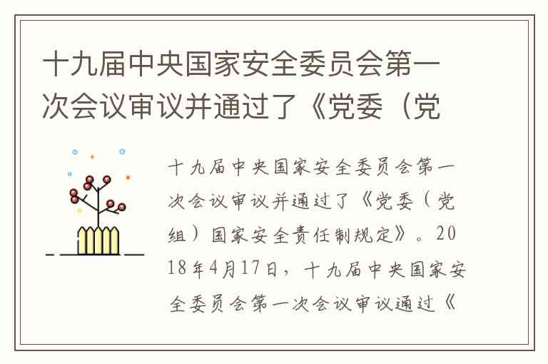 十九届中央国家安全委员会第一次会议审议并通过了《党委(党组)国家安全责任制规定》。