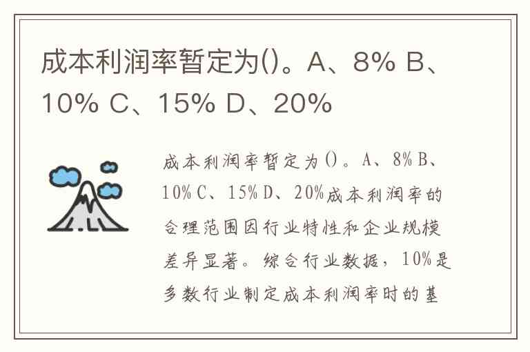 成本利润率暂定为()。A、8% B、10% C、15% D、20%