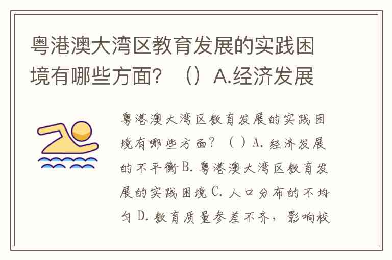 粤港澳大湾区教育发展的实践困境有哪些方面?()A.经济发展的不平衡 B.粤港澳大湾区教育发展的实践困境 C.人口分布的不均匀 D.教育质量参差不齐,影响校间均衡发展