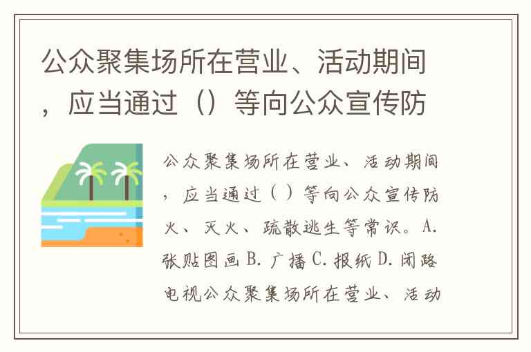 公众聚集场所在营业、活动期间,应当通过()等向公众宣传防火、灭火、疏散逃生等常识。A.张贴图画 B.广播 C.报纸 D.闭路电视