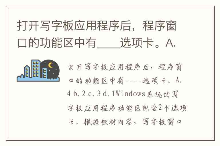 打开写字板应用程序后,程序窗口的功能区中有____选项卡。A.4 b.2 c.3 d.1