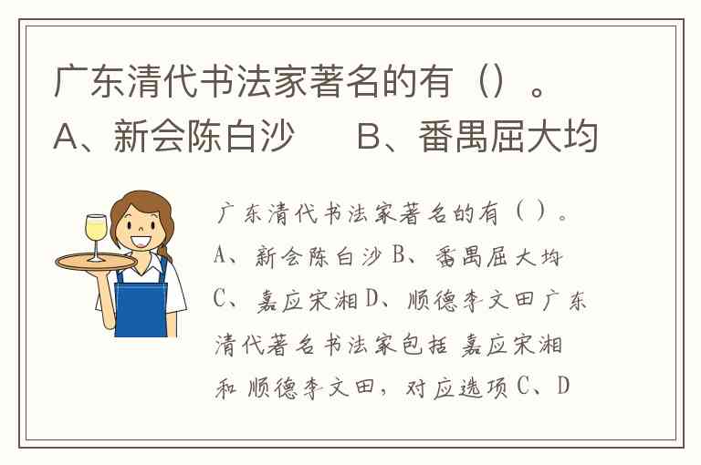 广东清代著名书法家包括 嘉应宋湘 和 顺德李文田,对应选项 C、D。