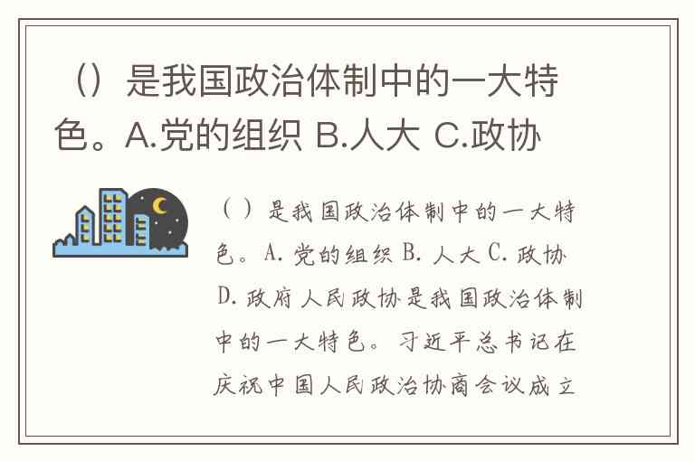 ()是我国政治体制中的一大特色。A.党的组织 B.人大 C.政协 D.政府